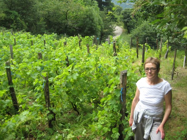 Major achievement today: the vineyard is pruned. All long wavy vines are now cropped neatly to just above the wire cordons. It even looks like a proper vineyard (if you exclude the low mat of weeds in between the rows). Jane came down to help and with two the whole process went rather quickly.