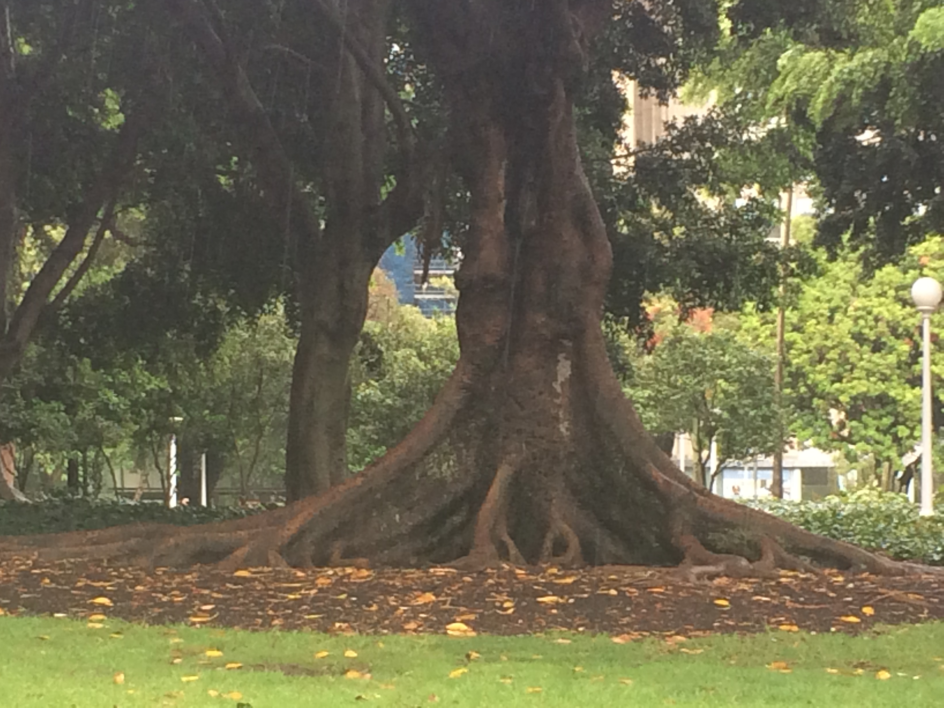 It turns out the fab trees in the park are Hill’s figs. (I went on the Hyde Park council maintenance website to see what they were mulching.)
