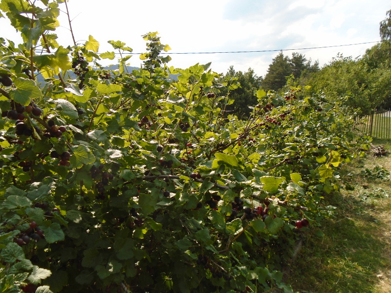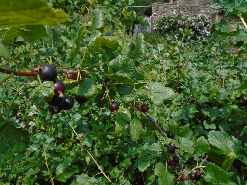In the photo above you can see the result of breeding the gooseberry on the left with the black currant on the right to produce some rather tasty offspring. It has the plump size of the gooseberry but without the spikes, and the juicy flavour of the black currant. A winner.